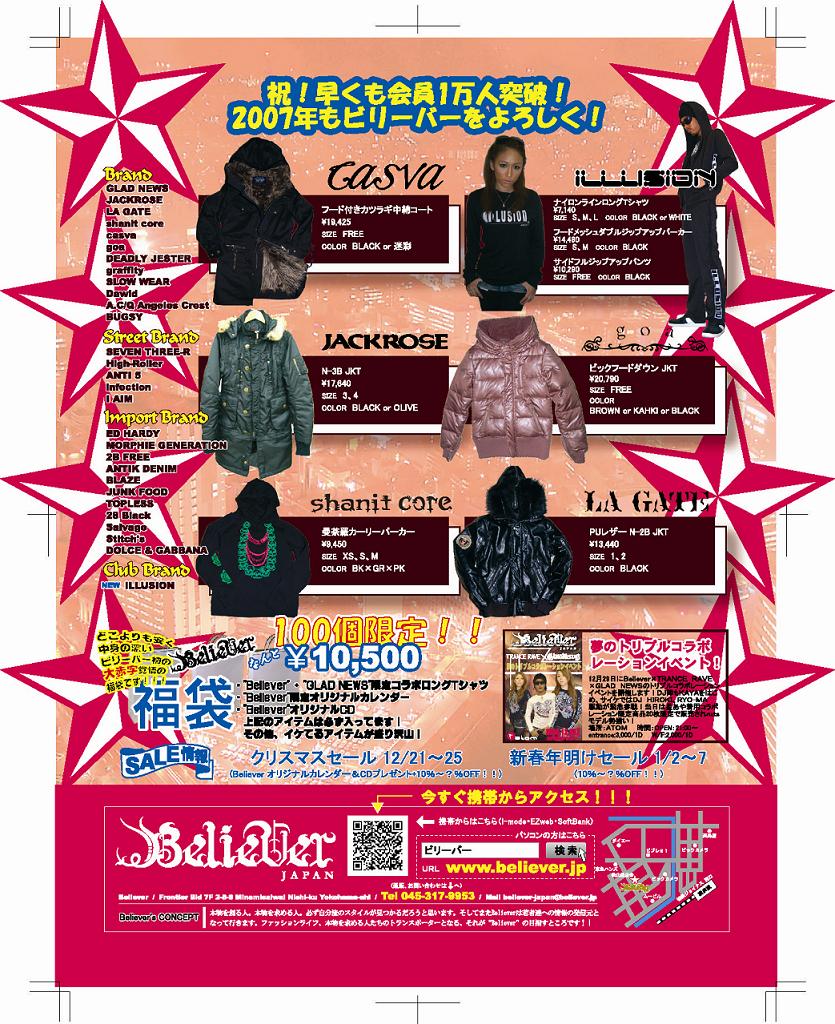 今日の日記!!久しぶりの日記になります!! おかげさまで、ビリーバーも皆さんのおかげで早くも会員1万人突破いたしました 今回この広告は12月21日発売のメンズナックルの原稿です さまざまな、特典だったり、イベント情報など盛りだくさんなので皆さん見てくださいね!! また、ビリーバーはこの原稿のとおり他には絶対無いサービスを提供していきますので今後とも 皆さんよろしくね セレクトショップ<Believer>