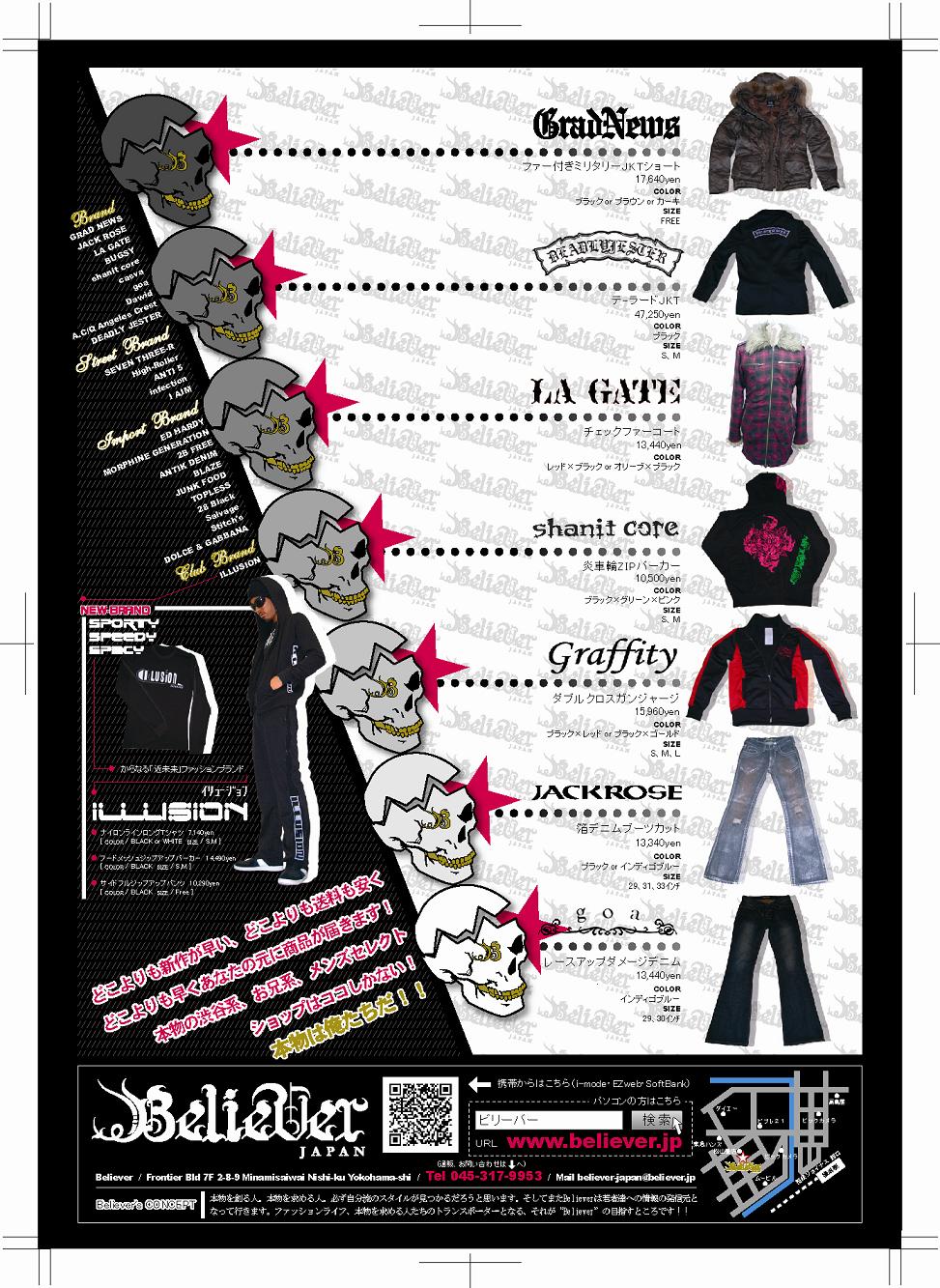 今日の日記は、とうとう、メンズナックル11月24日発売の原稿が出来上がりました!! 今回は今までの原稿と違って、ちょっと漫画っぽくなっています! 新しいBRANDも追加して、Believerもおかげさまでにぎわってまいりました!! これから年末に向けて、ドンドン突っ走って行くのでよろしくお願いします! セレクトショップ<Believer> |